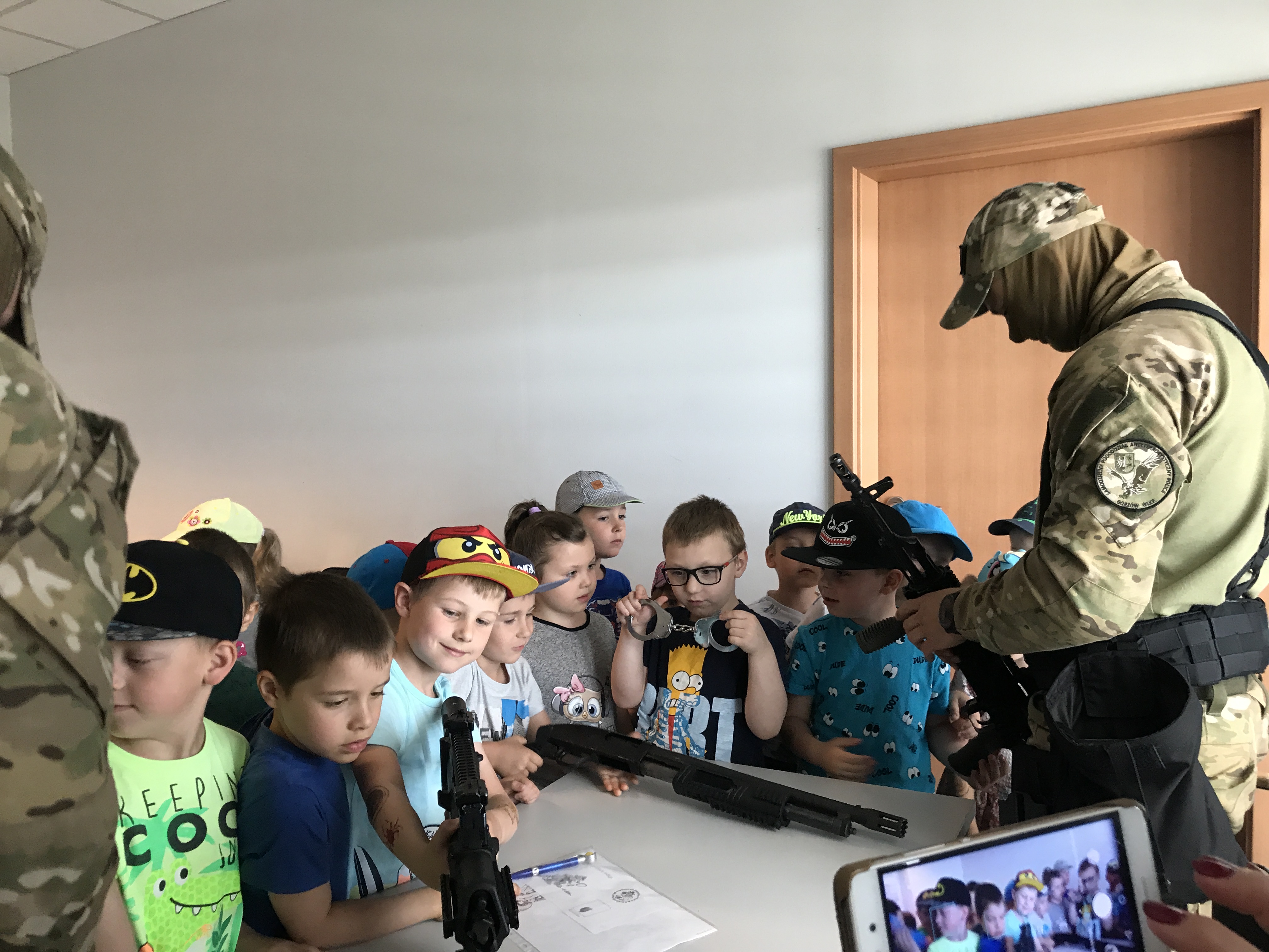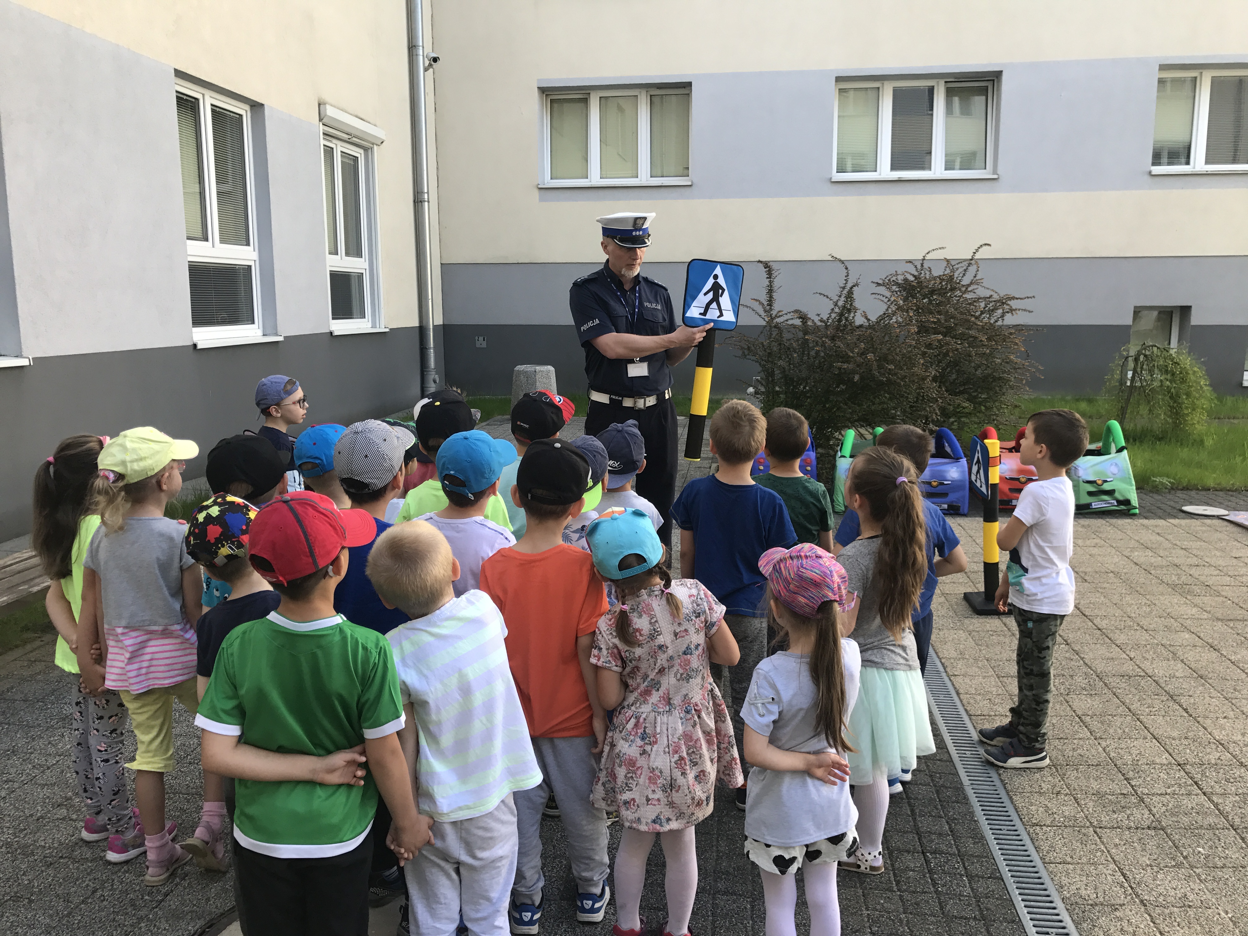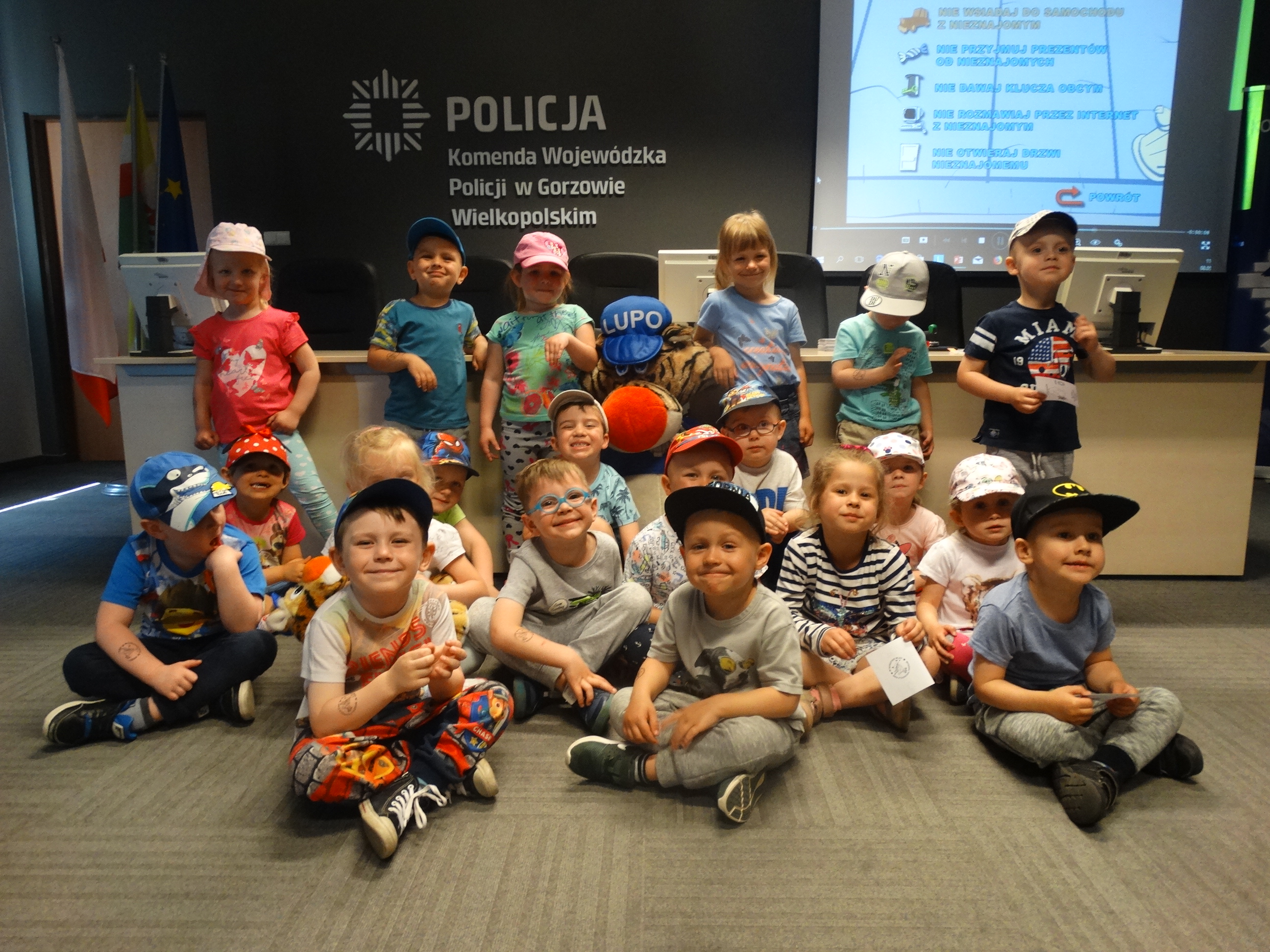 Nietypowa wycieczka dzieci była okazją, aby poznać z bliska pracę policjantów,obejrzeć radiowóz czy sprawdzić, jak wygląda stanowisko dowodzenia w Komendzie Wojewódzkiej Policji w Gorzowie Wlkp. Wiele emocji wzbudziło spotkanie z zamaskowanym funkcjonariuszem z Samodzielnego Pododdziału Antyterrorystycznego Policji w Gorzowie Wlkp., który opowiedział małym gościom o swojej pracy i zaprezentował broń oraz sprzęt, który wykorzystuje podczas codziennej służby. Oczywiście spotkanie z policjantami nie mogło obyć się bez pokazu radiowozu i jego wyposażenia. Dzieci z ogromną chęcią zaglądały do samochodu, aby przekonać się, co kryje służbowe auto. Mundurowi z Wydziału Ruchu Drogowego przygotowali także „miasteczko ruchu drogowego”. Dzieci dowiedziały się, jak bezpiecznie korzystać z przejścia dla pieszych oraz na jakim świetle sygnalizatora mogą przechodzić przez jezdnię.