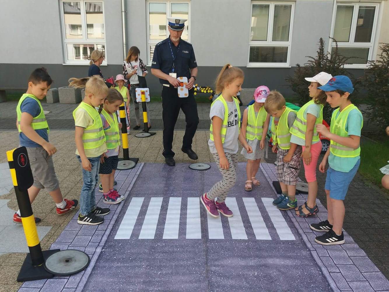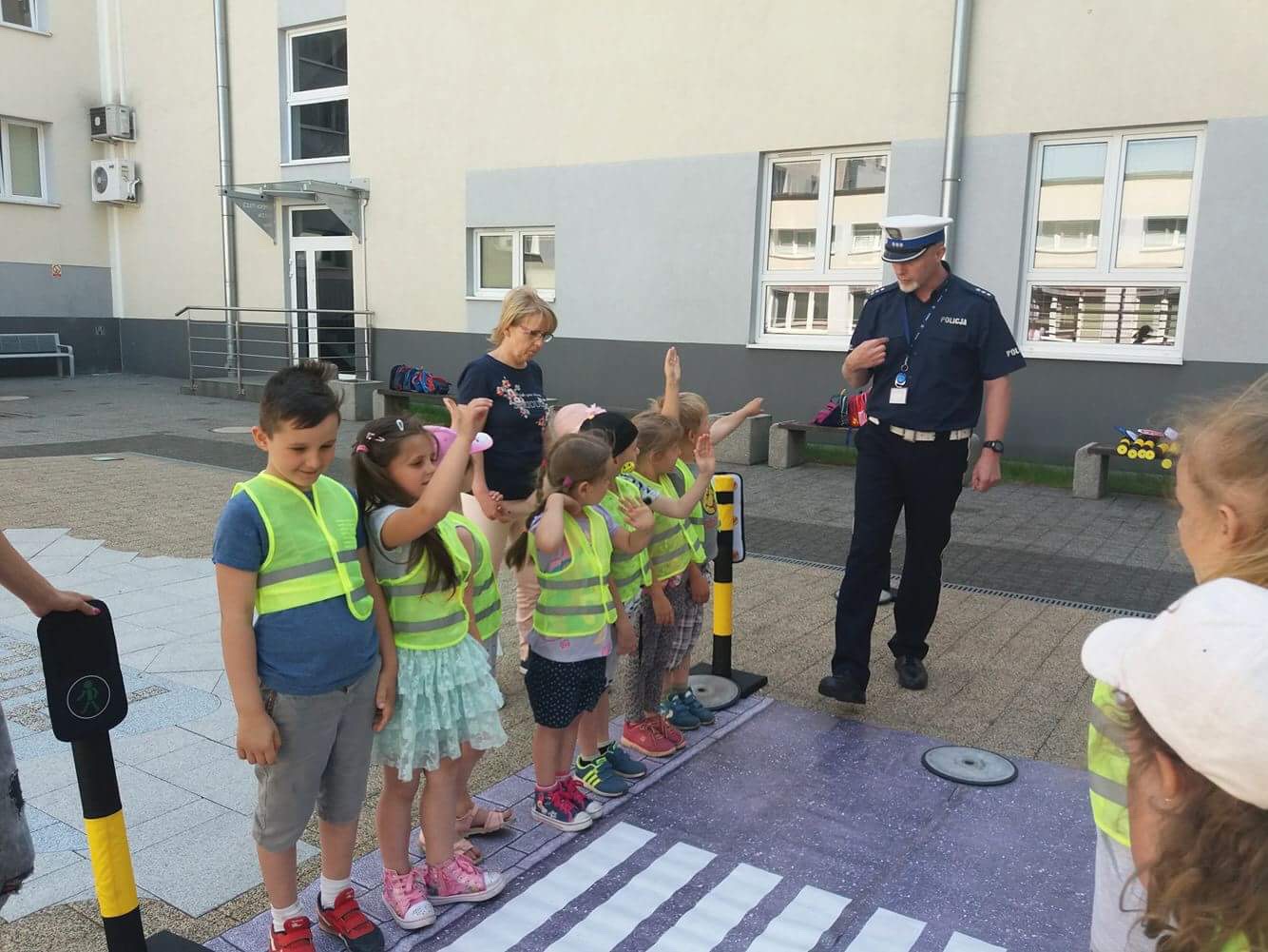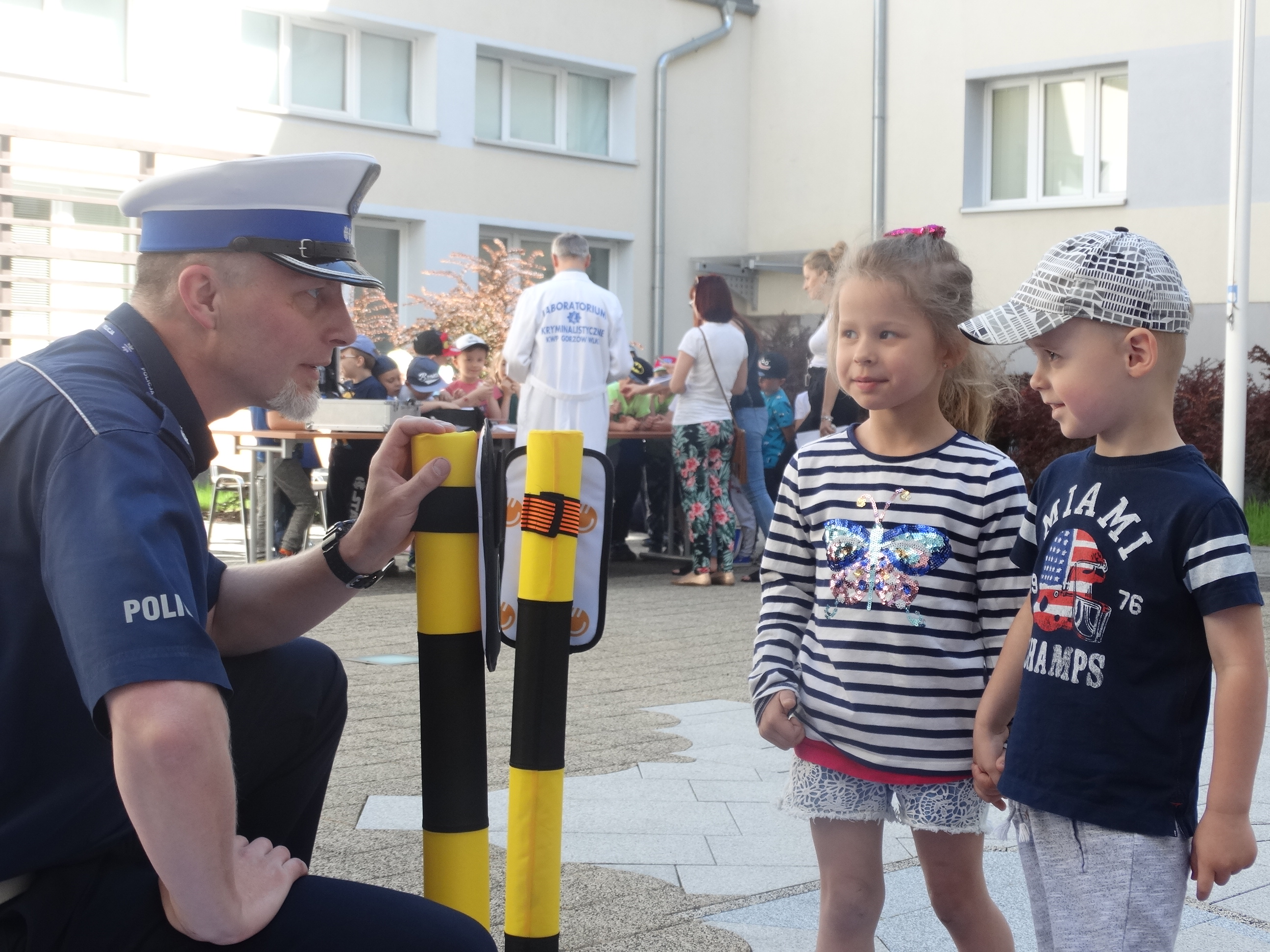 Nietypowa wycieczka dzieci była okazją, aby poznać z bliska pracę policjantów,obejrzeć radiowóz czy sprawdzić, jak wygląda stanowisko dowodzenia w Komendzie Wojewódzkiej Policji w Gorzowie Wlkp. Wiele emocji wzbudziło spotkanie z zamaskowanym funkcjonariuszem z Samodzielnego Pododdziału Antyterrorystycznego Policji w Gorzowie Wlkp., który opowiedział małym gościom o swojej pracy i zaprezentował broń oraz sprzęt, który wykorzystuje podczas codziennej służby. Oczywiście spotkanie z policjantami nie mogło obyć się bez pokazu radiowozu i jego wyposażenia. Dzieci z ogromną chęcią zaglądały do samochodu, aby przekonać się, co kryje służbowe auto. Mundurowi z Wydziału Ruchu Drogowego przygotowali także „miasteczko ruchu drogowego”. Dzieci dowiedziały się, jak bezpiecznie korzystać z przejścia dla pieszych oraz na jakim świetle sygnalizatora mogą przechodzić przez jezdnię.