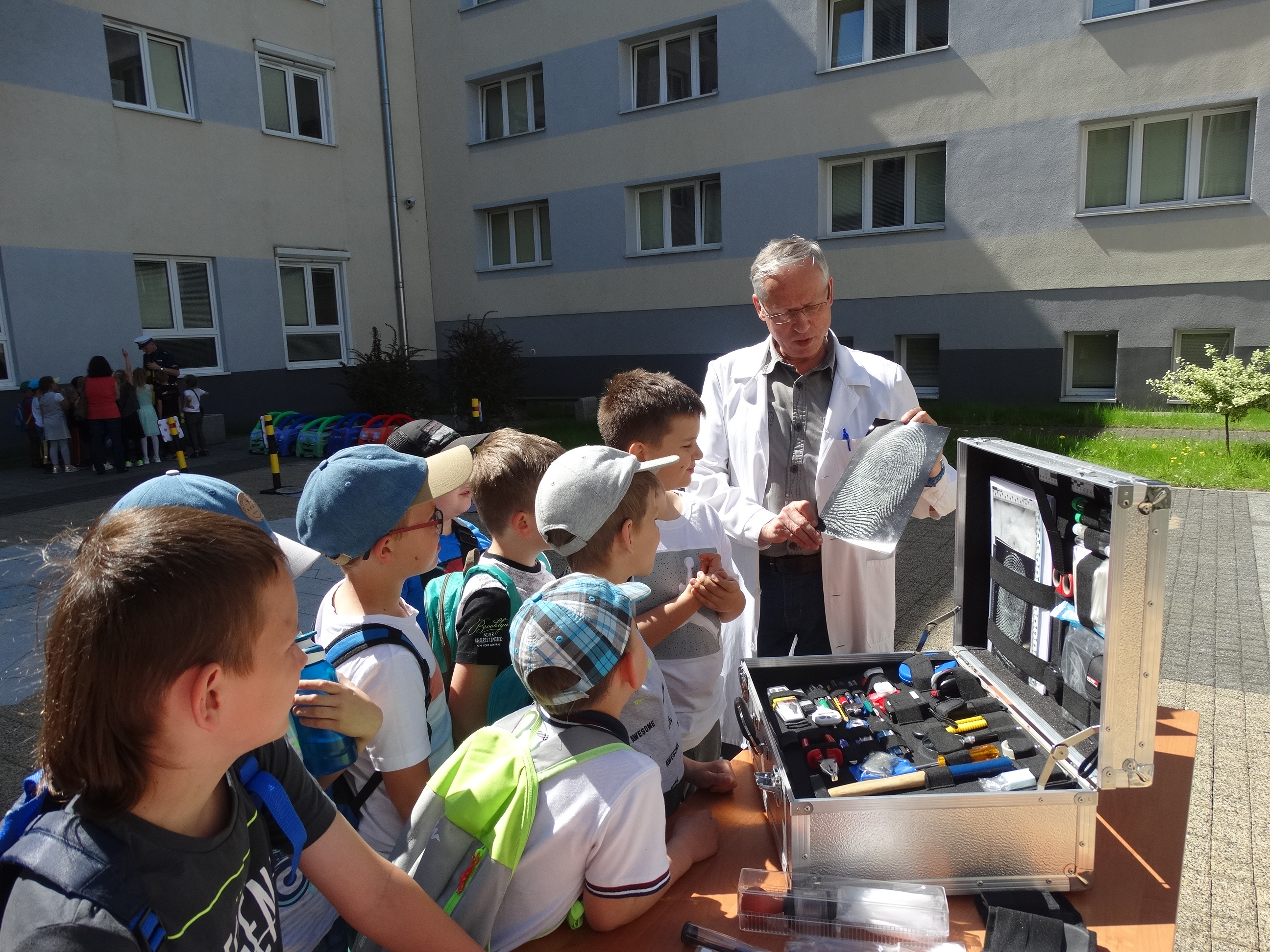 Maluchy odwiedziły także funkcjonariusza z Laboratorium Kryminalistycznego, który pokazał im, jak pobiera się odciski palców, a także w jaki sposób rozwiązuje się najtrudniejsze zagadki kryminalne. W trakcie wizyty w KWP najmłodsi zostali zapoznani również z pracą policjantów Wydziału Prewencji, a także dowiedzieli się, jak uniknąć niebezpieczeństw i zagrożeń, które mogą ich spotkać w życiu codziennym. Ponadto dzieci mogły obejrzeć filmy edukacyjne o bezpieczeństwie oraz usłyszały od funkcjonariuszy, jakie zagrożenia czekają na nie np. w drodze do szkoły czy podczas kontaktu z nieznajomymi osobami.
