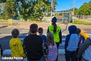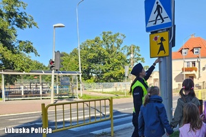 Po części teoretycznej, uczniowie wspólnie z policjantką wyszli na przejście dla pieszych, gdzie ćwiczyli jak należy prawidłowo przez nie przechodzić. Celem organizowanych zajęć jest utrwalenie wiedzy, uwrażliwienie dzieci na zagrożenia jakie mogą wystąpić w ich otoczeniu oraz nauczenie właściwego reagowania na nie.