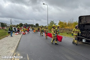Scenariusz obejmował szereg działań ratowniczych w tym między innymi ewakuacje poszkodowanych. Na miejscu panowała pełna mobilizacja. Wszystkie służby realizowały swoje zadania zgodnie z procedurami. Policjanci zabezpieczali miejsce zdarzenia, kierowali ruchem i prowadzili wszystkie czynności w niezbędnym zakresie. Strażacy udrażniali dostęp do poszkodowanych i neutralizowali zagrożenia. Ratownicy medyczni udzielali pierwszej pomocy i organizowali transport poszkodowanych do szpitali. Wszystko przebiegało sprawnie, profesjonalnie i z zachowaniem zasad bezpieczeństwa. Podstawowym celem ćwiczeń było doskonalenie współpracy służb w sytuacjach nagłych, a także sprawdzenie gotowości organizacyjnej i logistycznej w przypadku wystąpienia rzeczywistej katastrofy drogowej. Takie szkolenia pozwalają uczestnikom nie tylko przećwiczyć praktyczne działania, ale również wyciągnąć wnioski i usprawnić procedury współdziałania. Regularne ćwiczenia są niezwykle ważne, pozwalają nam doskonalić umiejętności, sprawdzać skuteczność podejmowanych działań oraz wzmocnić współpracę między wszystkimi służbami ratunkowymi.
