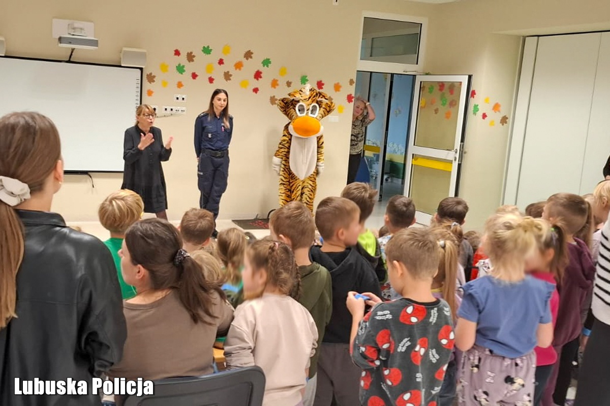 W środę ( 22 października ) funkcjonariusze z Komendy Powiatowej Policji w Międzyrzeczu odwiedzili uczniów Szkoły Podstawowej nr 1 w Międzyrzeczu oraz przedszkolaków z Przedszkola Kasztanowa Kraina w Przytocznej, by porozmawiać o zasadach bezpieczeństwa. Spotkanie miało na celu przypomnienie najmłodszym, jak ważne jest właściwe zachowanie na drodze oraz ostrożność w kontaktach z nieznajomymi.