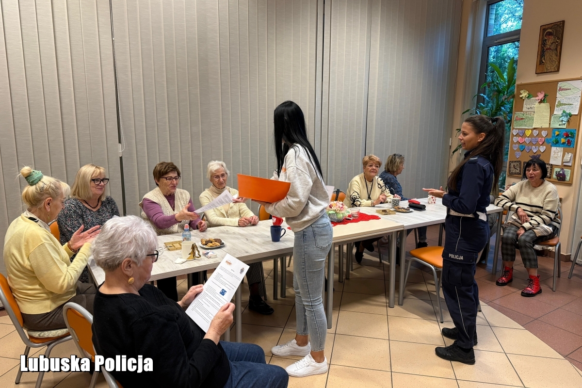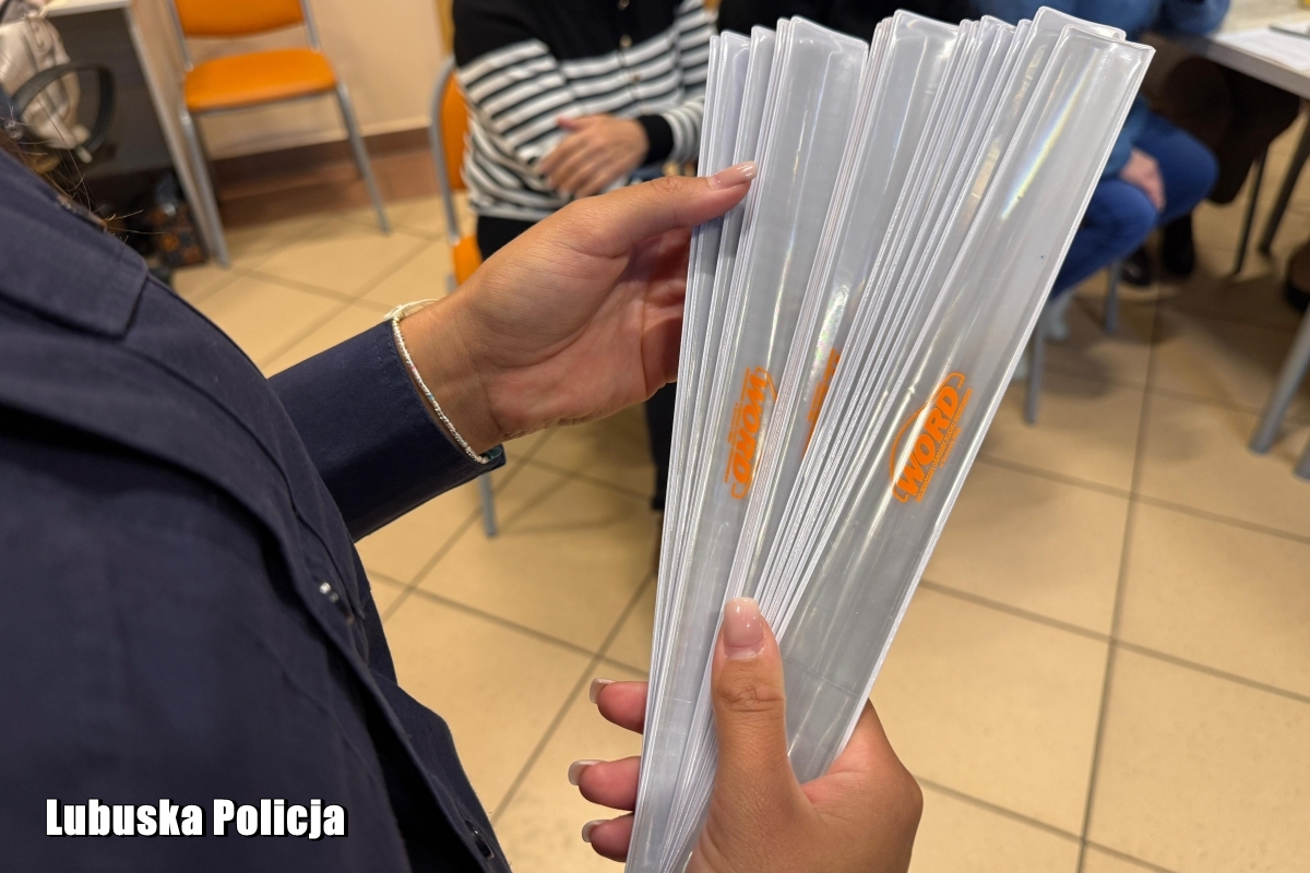 Lubuska Policja dokłada wszelkich starań, aby ze swoim profilaktycznym przekazem docierać do jak największej grupy odbiorców. Gościmy w przedszkolach, szkołach, ale i miejscach zrzeszających osoby starsze. W minionych tygodniach, to właśnie na seniorach skupiliśmy się najbardziej, bowiem październik to przecież ich miesiąc. Funkcjonariusze Wydziału Ruchu Drogowego gorzowskiej komendy wojewódzkiej wraz z Wojewódzkim Ośrodkiem Ruchu Drogowego w Gorzowie Wielkopolskim byli inicjatorami wykładów oraz akcji profilaktycznych, które cieszyły się bardzo dużym powodzeniem. Jedno z takich spotkań odbyło się 28 października w Bibliotece Wojewódzkiej. Policjantki w białych czapkach przeprowadziły prelekcję na temat świadomego uczestnictwa w ruchu drogowym, w roli osoby pieszej, rowerzysty i kierowcy. Dużą uwagę poświęciły kwestii noszenia elementów odblaskowych. Pani Elżbieta Kochmańska, reprezentująca gorzowski WORD, zachęciła uczestników do rozwiązania specjalnie przygotowanego na tę okazję testu wiedzy. Następnie wspólnie z mundurowymi omówiła poprawne odpowiedzi. Każdy uczestnik za udział w zmaganiach wiedzy, otrzymał miły upominek w postaci mini apteczki oraz świecącej opaski. Przeprowadzone spotkanie pokazało, iż nasi seniorzy dosłownie i w przenośni mogą świecić przykładem na drodze.