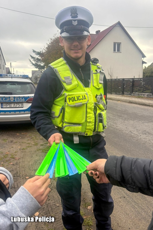 Noszenie odblasków przez pieszych znacząco zwiększa ich widoczność i bezpieczeństwo na drodze, zwłaszcza w warunkach ograniczonej widoczności. Dlatego też policjanci przeciwdziałając zdarzeniom z udziałem niechronionych uczestników ruchu drogowego wręczają im odblaski oraz przypominają o zasadach ich noszenia.