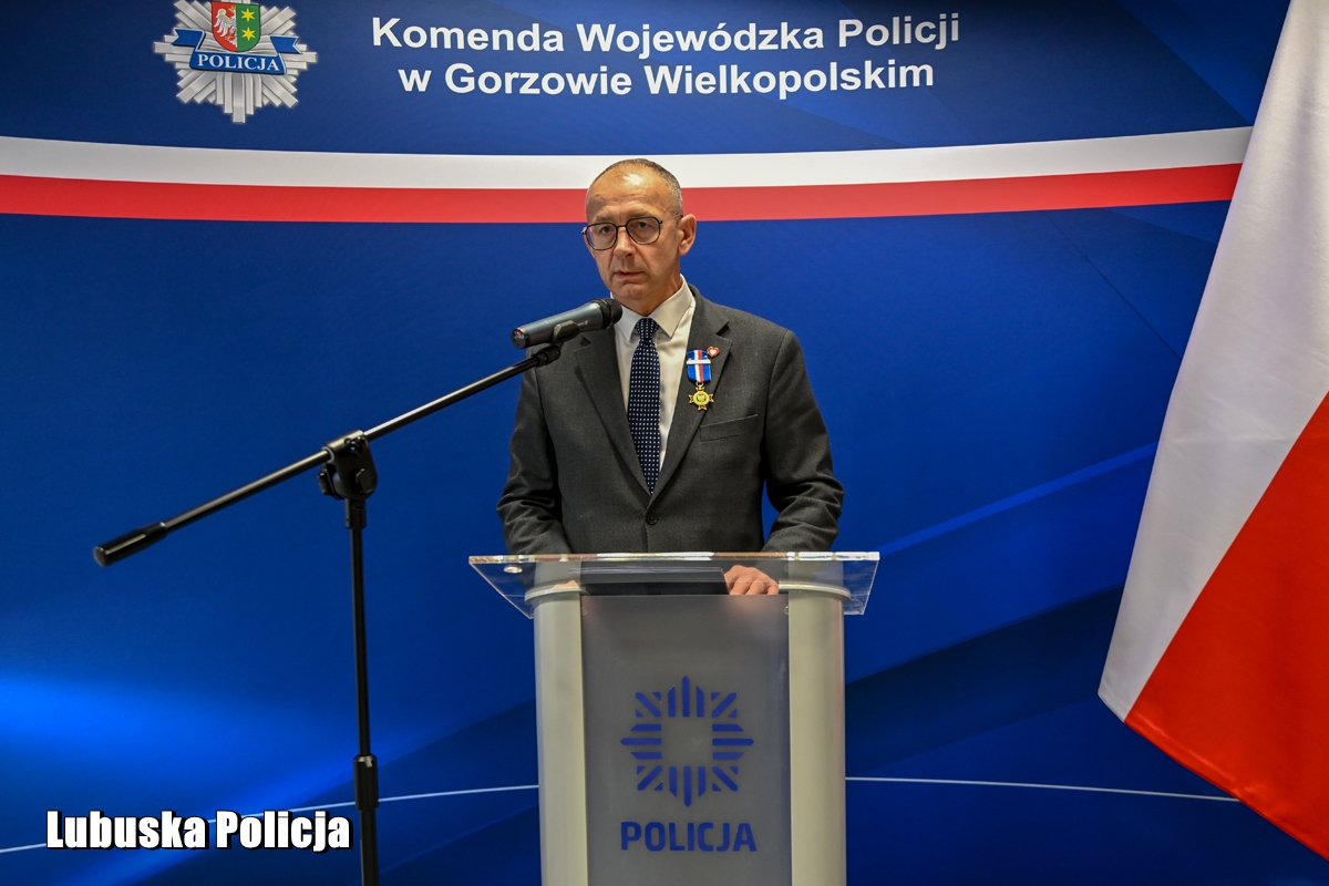 Podczas uroczystości głos zabrał także Wojewoda Lubuski Marek Cebula, który pogratulował wszystkim odznaczonym osobom i podziękował w imieniu wszystkich mieszkańców województwa lubuskiego za zaangażowanie i profesjonalizm w codziennej służbie na rzecz bezpieczeństwa.