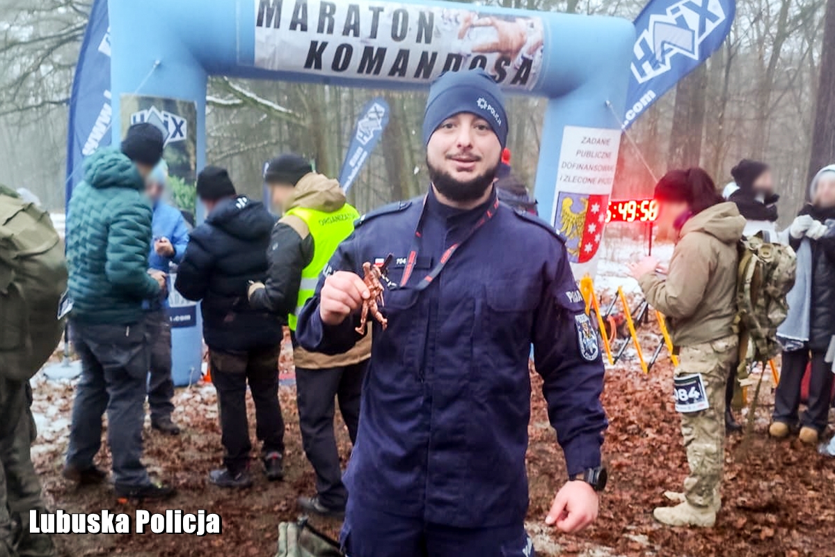 Starszy posterunkowy Mateusz Kaziów z Komendy Powiatowej Policji w Żaganiu ukończył wymagający XXII Maraton Komandosa. Podczas biegu, który odbył się w sobotę (29 listopada) pod Lublińcem, uczestnicy mieli do pokonania ponad 40 kilometrów w pełnym umundurowaniu i z obciążeniem.