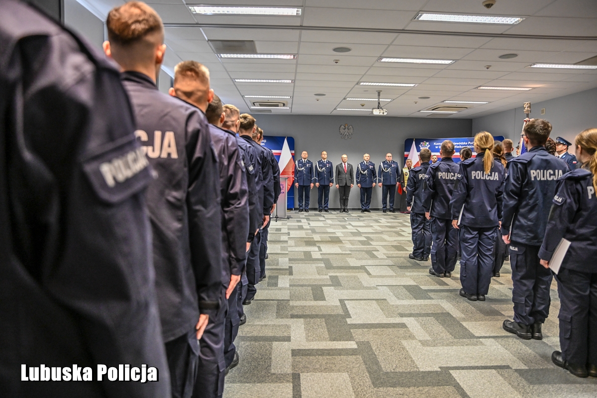 Słowa do nowo przyjętych funkcjonariuszy skierował Komendant Wojewódzki Policji w Gorzowie Wielkopolskim, inspektor Jerzy Czebreszuk: „Dziś zaczyna się Wasza nowa droga. Niech każde wyzwanie będzie dla Was lekcją, a każda trudna chwila okazją do wykazania się odwagą i profesjonalizmem. Pamiętajcie, że służba w Policji to nie tylko obowiązek, ale i przywilej – szansa, by realnie wpływać na bezpieczeństwo mieszkańców Ziemi Lubuskiej”.