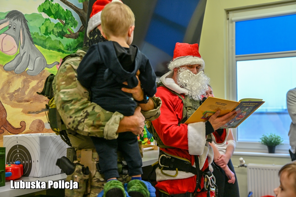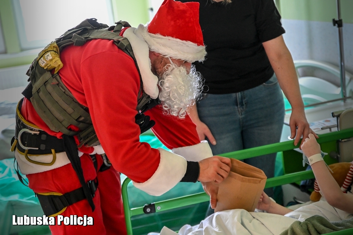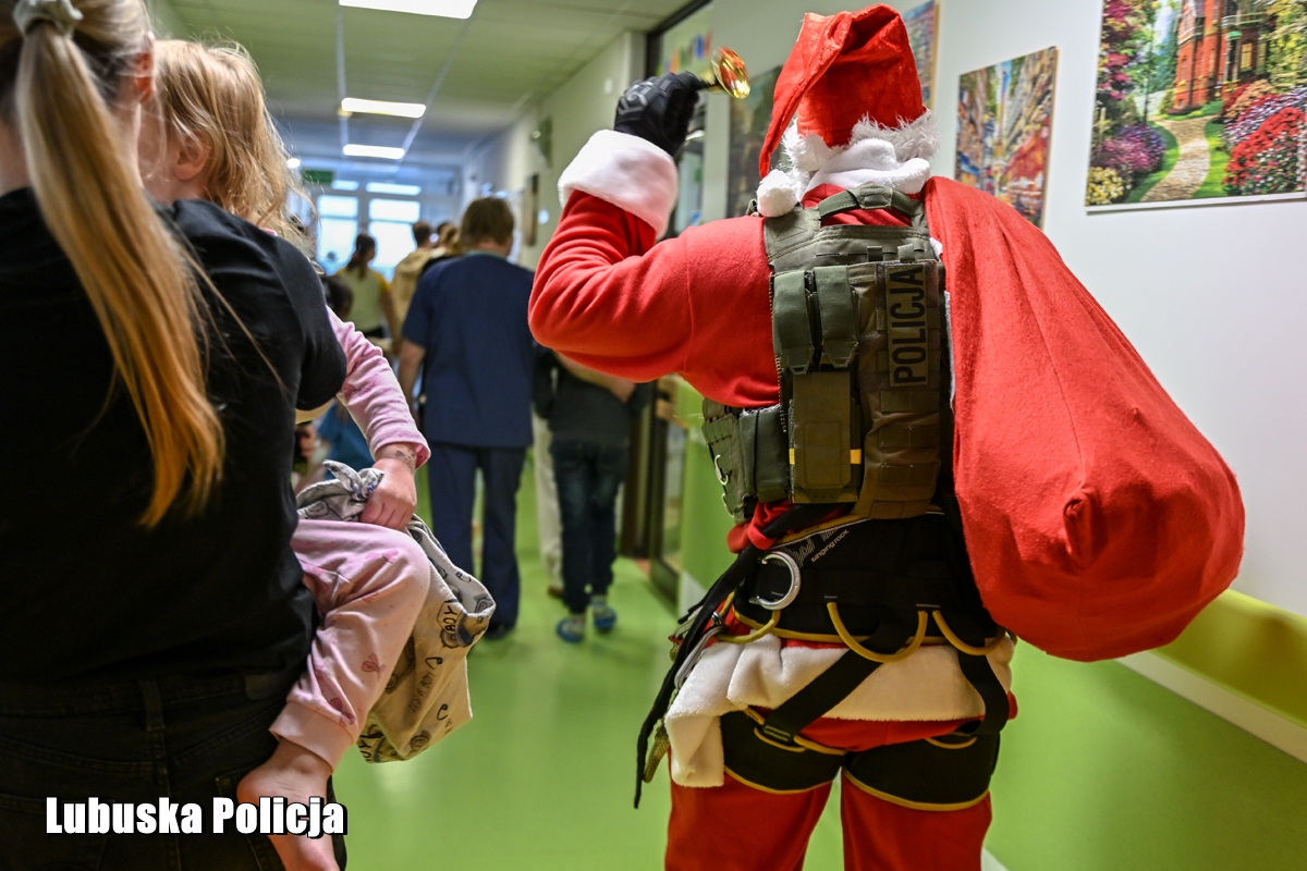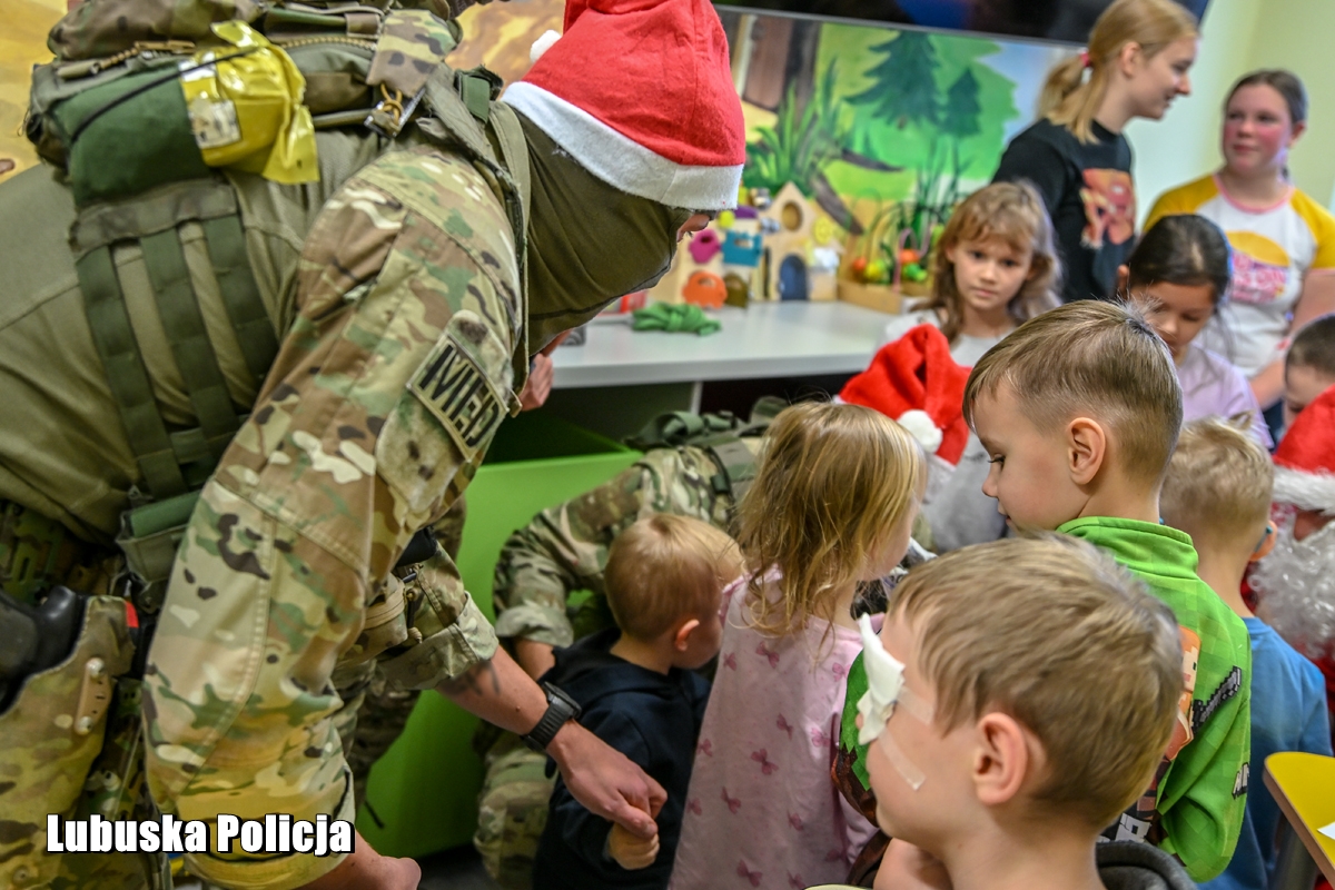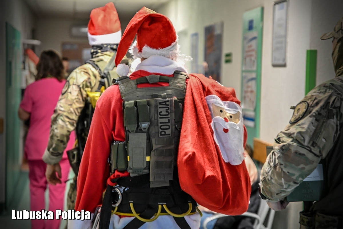 W czwartek (4 grudnia) lubuscy kontrterroryści razem z Komendantem Wojewódzkim Policji w Gorzowie Wielkopolskim inspektorem Jerzym Czebreszukiem pojawili się na oddziale pediatrii gorzowskiego szpitala. Twardzi, doświadczeni profesjonaliści pokazali, że za kuloodpornymi kamizelkami kryją się wielkie, wrażliwe serca. Zorganizowali zbiórkę słodyczy i maskotek, a następnie przekazali je dzieciom przebywającym na oddziale. Jeden z nich postanowił dodatkowo zafundować maluchom widowiskowy pokaz – wejść na salę szpitalną przez okno, opuszczając się po linie z dachu budynku. Widok Świętego Mikołaja, zjeżdżającego do środka jak filmowi bohaterowie, wywołał wśród małych pacjentów prawdziwy entuzjazm. To był jednak dopiero początek atrakcji. Policjanci pokazali najmłodszym wyposażenie oraz różne jednostki broni, opowiadając o specyfice swojej służby. Dla dzieci była to nie tylko zabawa, lecz także okazja, by z bliska poznać funkcjonariuszy, których na co dzień mogą kojarzyć się z akcjami o najwyższym stopniu ryzyka. Uśmiechy pojawiły się również na twarzach samych policjantów.