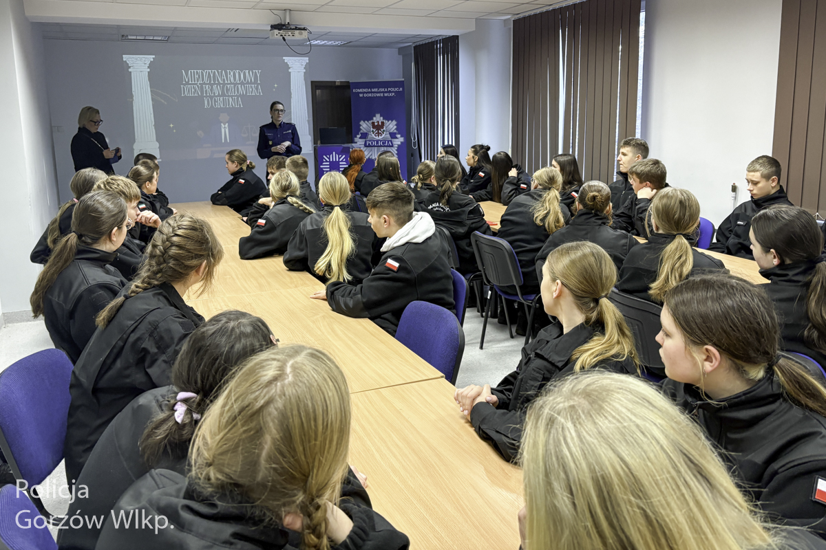 Uczniowie oddziałów mundurowych z klas pierwszych spotkali się z policjantami w gorzowskiej komendzie. W ramach obchodów Międzynarodowego Dnia Praw Człowieka młodzież wysłuchała prelekcji, a także zapoznała się ze specyfiką pracy w poszczególnych wydziałach.