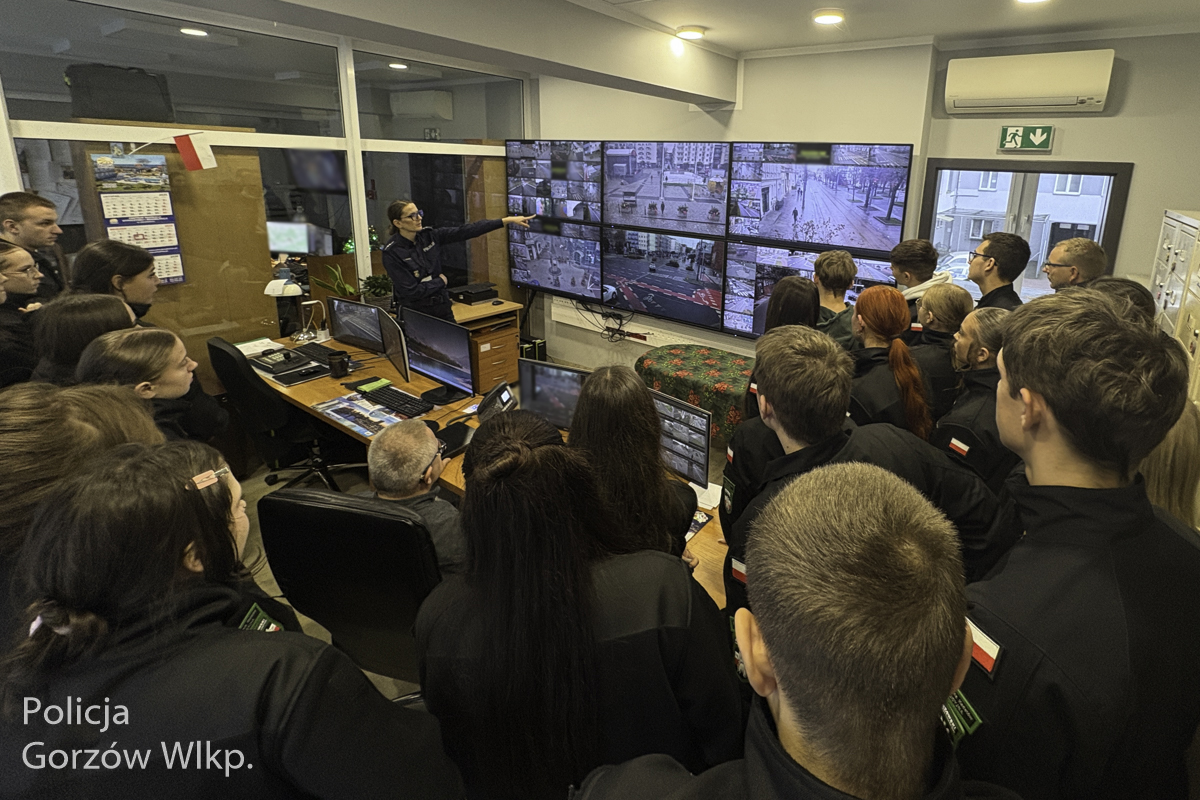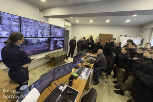 Wizyta oddziałów mundurowych to także doskonała okazja do tego, by przyszli funkcjonariusze już dzisiaj zgłębiali tajniki policyjnej służby. Młodzież miała okazje przejść korytarzami komendy, by po drodze zapoznać się ze specyfiką pracy w poszczególnych wydziałach. Uczniowie zobaczyli także centrum miejskiego monitoringu.