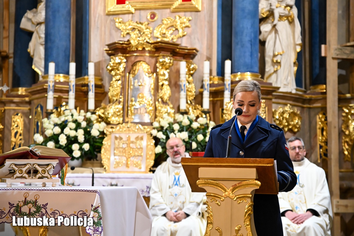 Uroczyste nabożeństwo w rokitniańskiej bazylice rozpoczęło się zgodnie z ceremoniałem, od wprowadzenia sztandaru Komendy Wojewódzkiej Policji w Gorzowie Wielkopolskim. Mszy Świętej przewodniczył kapelan lubuskiej Policji, ksiądz kanonik Jerzy Piasecki, oraz kustosz sanktuarium, ksiądz kanonik Marcin Kliszcz.