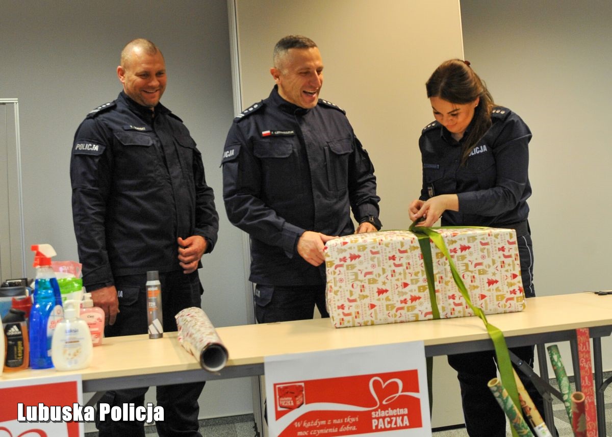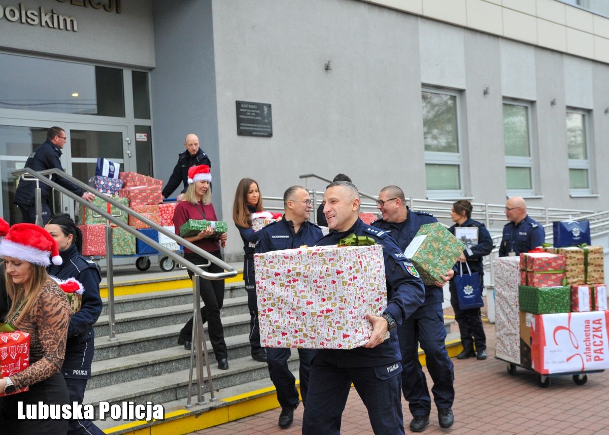 Służba w Policji to nie tylko wypełnianie obowiązków zawodowych i zapewnianie bezpieczeństwa publicznego, ale także chęć niesienia pomocy tym, którzy znaleźli się w trudnej sytuacji życiowej. Szczególnie w okresie przedświątecznym, kiedy tak ważne jest wzajemne wsparcie i życzliwość. Działająca od ponad dwóch dekad „Szlachetna Paczka” to akcja charytatywna, która łączy tysiące Polaków przygotowujących paczki dla potrzebujących rodzin. W tę piękną inicjatywę włączyli się funkcjonariusze oraz pracownicy cywilni Komendy Wojewódzkiej Policji w Gorzowie Wielkopolskim na czele z komendantem inspektorem Jerzym Czebreszukiem oraz jego zastępcami. Mundurowi doskonale wiedzą, że w naszym regionie jest wiele potrzebujących rodzin. Dlatego postanowili zorganizować zbiórkę na rzecz starszej kobiety opiekującej się niepełnosprawnym synem oraz samotnej seniorki. Na liście potrzeb, oprócz żywności i środków czystości, znalazły się także ubrania oraz pralka i lodówka. Funkcjonariusze i pracownicy policji wykazali się dużą ofiarnością. Dzięki zebranym środkom uda się spełnić wszystkie aktualne potrzeby obdarowanych osób. W sobotę (13 grudnia) spakowane prezenty zostały przekazane wolontariuszom stowarzyszenia „Wiosna”, aby później trafić do wybranych rodzin. Także w tym roku uczestniczymy w akcji „Torba Charytatywna Caritas”. To inicjatywa, która polega na zbieraniu między innymi żywności z długim terminem przydatności, która będzie służyła potrzebującym także po świętach. Oprócz artykułów spożywczych mundurowi zebrali kosmetyki i środki czystości. Wszystkie dary zostaną przekazane przedstawicielom regionalnego oddziału Caritas.