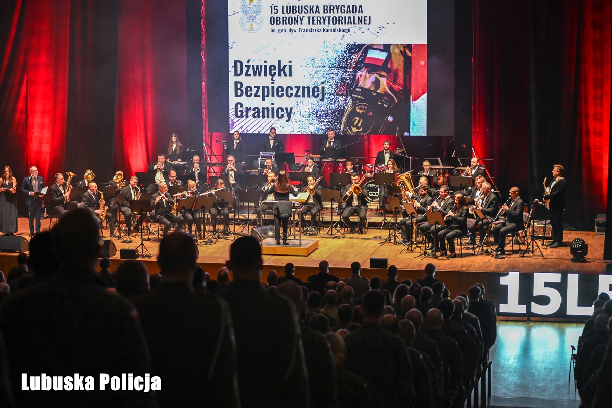 W niedzielne południe (14 grudnia) Filharmonia Gorzowska była miejscem koncertu „Dźwięki Bezpiecznej Granicy”, zorganizowanego przez 15 Lubuską Brygadę Obrony Terytorialnej. Przed jego rozpoczęciem uroczyście podziękowano żołnierzom i funkcjonariuszom za zaangażowanie oraz profesjonalne wykonywanie obowiązków służbowych w zakresie ochrony granicy państwowej. Podziękowania Wojewody Lubuskiego za rzetelną i profesjonalną służbę otrzymali również lubuscy policjanci z Samodzielnego Pododdziału Prewencji Policji w Gorzowie Wielkopolskim, którzy od lipca, wspólnie z funkcjonariuszami Straży Granicznej, żołnierzami i funkcjonariuszami innych służb mundurowych, pełnią służbę na polsko - niemieckiej granicy. Oprócz nich lubuską Policję reprezentował Komendant Wojewódzki Policji w Gorzowie Wielkopolskim inspektor Jerzy Czebreszuk wraz z towarzyszącymi mu komendantami miejskimi i powiatowymi.