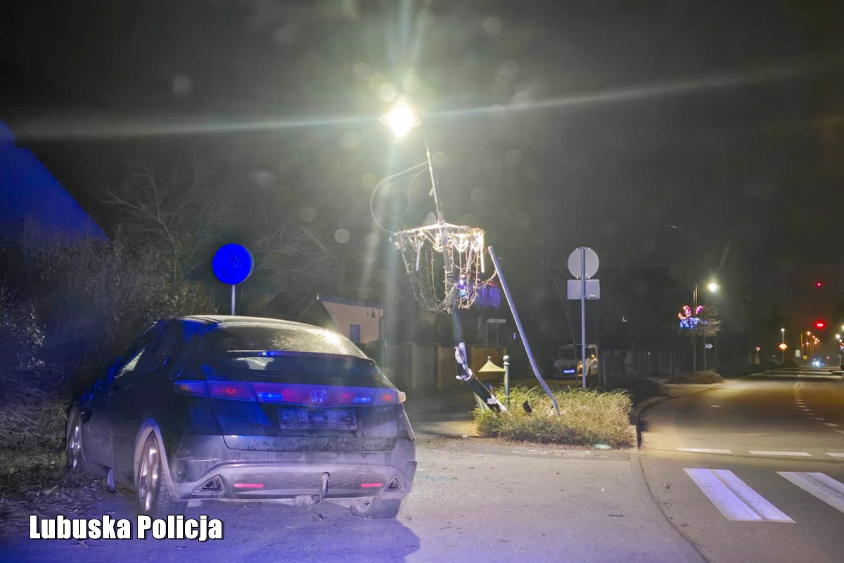 Blisko dwa promile i brak prawa jazdy. 21-latek zakończył jazdę na latarni