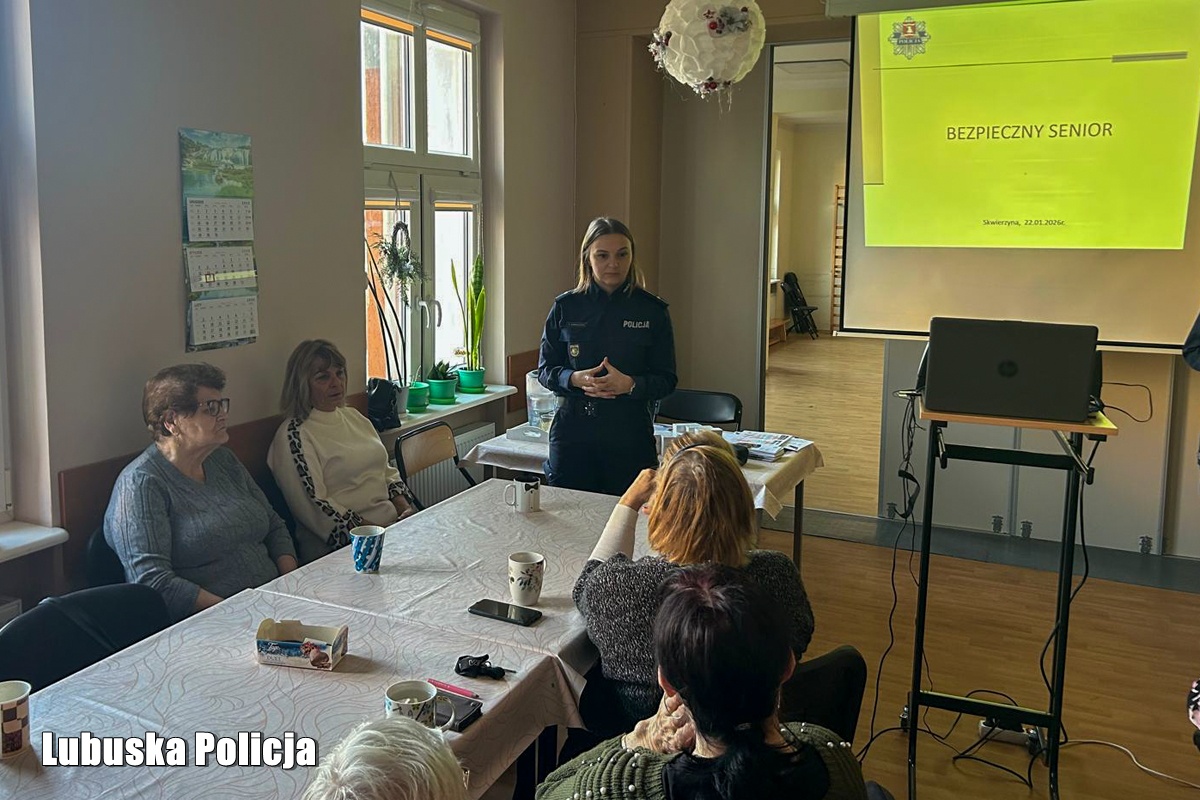 Z okazji obchodów Dnia Babci i Dziadka funkcjonariusze z Komendy Powiatowej Policji w Międzyrzeczu w czwartek (22 stycznia) odwiedzili podopiecznych Dziennego Domu Seniora „Wigor” w Skwierzynie, aby wspólnie świętować ten wyjątkowy dzień, a jednocześnie porozmawiać o szeroko rozumianym bezpieczeństwie osób starszych. Spotkanie przebiegło w miłej i serdecznej atmosferze, a jego głównym celem było zwiększenie świadomości seniorów na temat zagrożeń, z jakimi mogą się spotkać na co dzień.