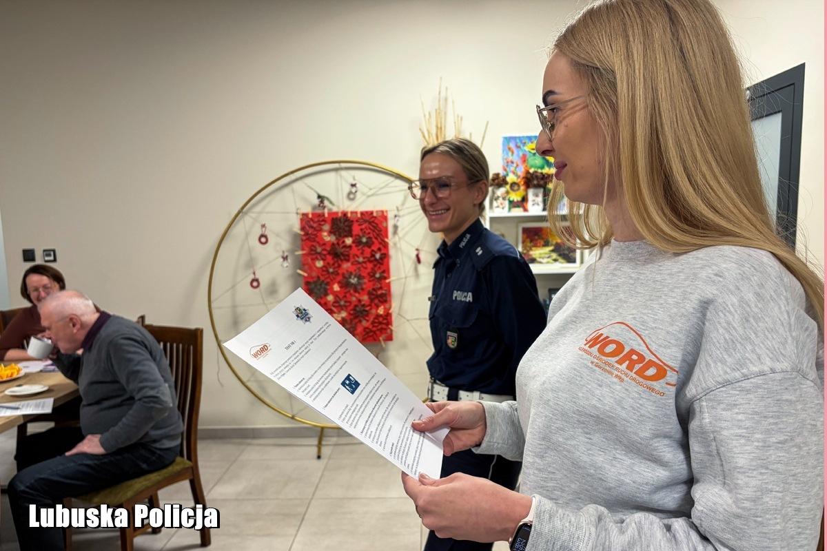Zaledwie kilka dni temu obchodziliśmy Dzień Babci oraz Dzień Dziadka. Była to doskonała okazja, aby lubuscy policjanci odwiedzili miejsca zrzeszające osoby starsze i porozmawiali o tym, co ważne. W końcu nie ma piękniejszego prezentu niż bezpieczeństwo. Co jednak warte podkreślenia, o naszych seniorów dbamy zawsze, nie tylko od święta. Przez cały rok mundurowi organizują cykliczne spotkania, podczas których podnoszą ich wiedzę na temat zagrożeń związanych z oszustwami, ale również edukują na rzecz świadomego uczestnictwa w ruchu drogowym. Obecna pogoda – opady deszczu, śniegu i niskie temperatury oraz śliskie nawierzchnie stanowią poważne utrudnienie zarówno dla pieszych, jak i kierowców. W ramach podejmowanych inicjatyw profilaktycznych funkcjonariusze przypominają seniorom o zasadach bezpiecznego poruszania się po drogach, konieczności zachowania szczególnej ostrożności podczas przechodzenia przez jezdnię oraz noszenia elementów odblaskowych. Dokładnie te kwestie podnoszone były podczas ostatniego spotkania przeprowadzonego przez policjantki Wydziału Ruchu Drogowego Komendy Wojewódzkiej Policji w Gorzowie Wielkopolskim – niemal po sąsiedzku, bo w gorzowskim Domu u Opatów. Jak zwykle w tej materii mogliśmy liczyć na wsparcie ze strony Wojewódzkiego Ośrodka Ruchu Drogowego w Gorzowie Wielkopolskim. Można śmiało stwierdzić, iż nasze wspólne działania to już tradycja. Wizyta u seniorów upłynęła w bardzo miłej atmosferze. Był test wiedzy, były wykłady, było studium przypadków – czyli wszystko to, co podnosi świadomość osób starszych w zakresie bezpiecznego poruszania się po drogach. Na zakończenie wizyty, uczestnicy Dziennego Domu Pobytu otrzymali odblaskowe opaski oraz specjalnie przygotowane informatory. Wielu seniorów dopytywało, kiedy odwiedzimy ich ponownie. Odpowiedź może być tylko jedna – już niebawem.