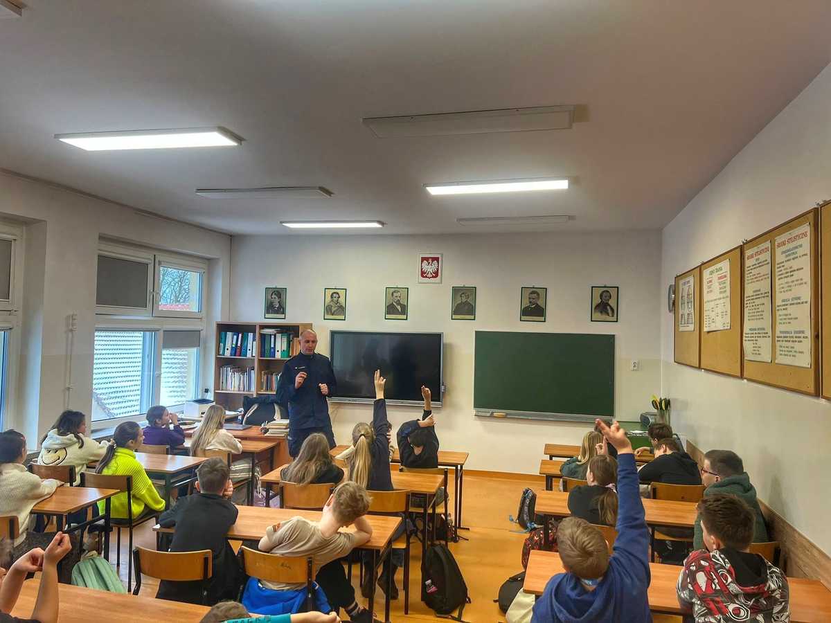 Podczas wizyty w szkole w Cigacicach policjant rozmawiał z uczniami o zasadach bezpieczeństwa podczas ferii- zarówno tych spędzanych na świeżym powietrzu, jak i w domu. Dzieci dowiedziały się, jak zachować ostrożność na drodze, lodowisku czy stoku, ale także jak reagować w sytuacjach zagrożenia i do kogo zwrócić się po pomoc. Ważnym elementem spotkania była rozmowa o odpowiedzialności prawnej nieletnich, czyli o tym, że nawet młode osoby ponoszą konsekwencje swoich czynów, a nieprzemyślane decyzje mogą mieć poważne skutki.