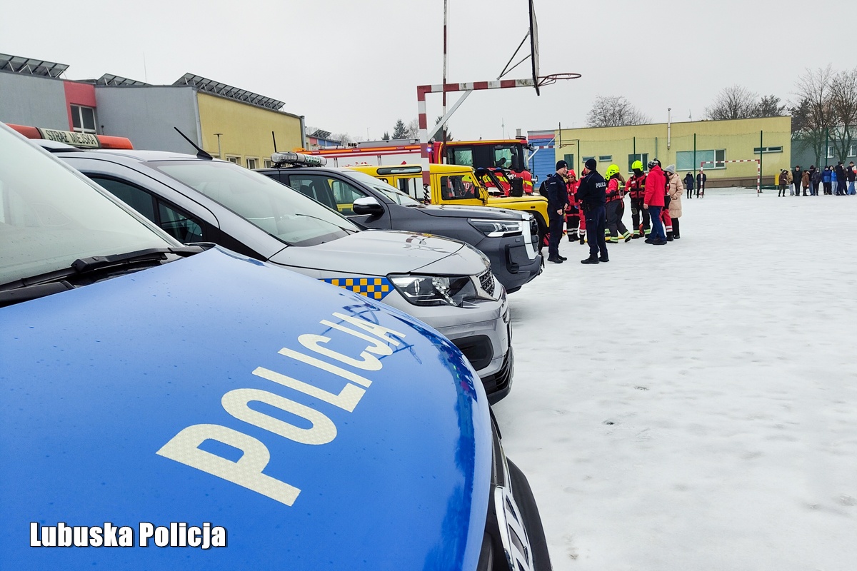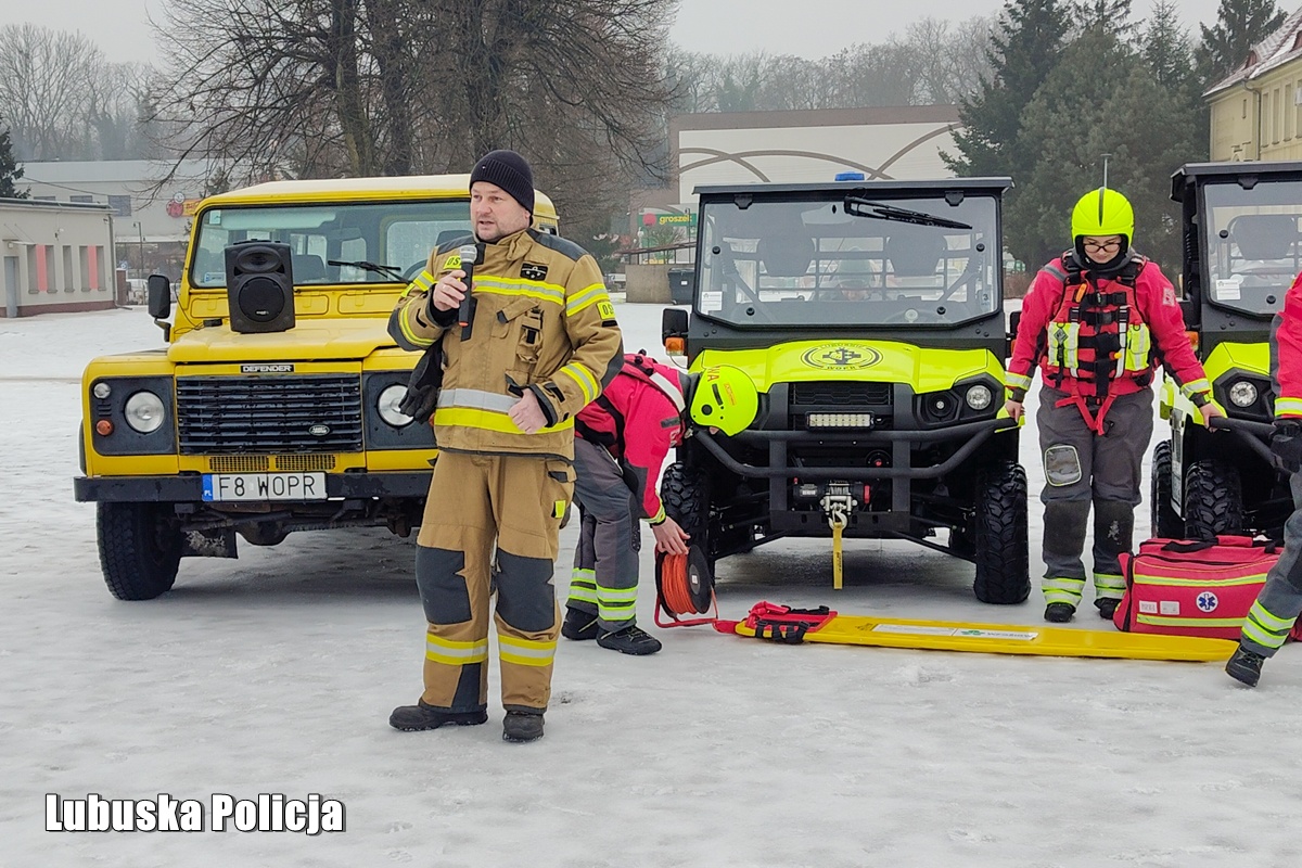 W piątek (6 lutego) z inicjatywy funkcjonariuszy sławskiego komisariatu na boisko szkoły podstawowej w Sławie zjechały się służby odpowiedzialne za bezpieczeństwo mieszkańców powiatu wschowskiego. Oprócz wspomnianych policjantów przyjechali strażnicy miejscy, przedstawiciele Straży Leśnej, druhowie OSP jak również ratownicy WOPR na których czekali już uczniowie podstawówki. Na początku spotkania policjanci przypomnieli podstawowe zasady bezpieczeństwa związane z zimowym wypoczynkiem, w tym: