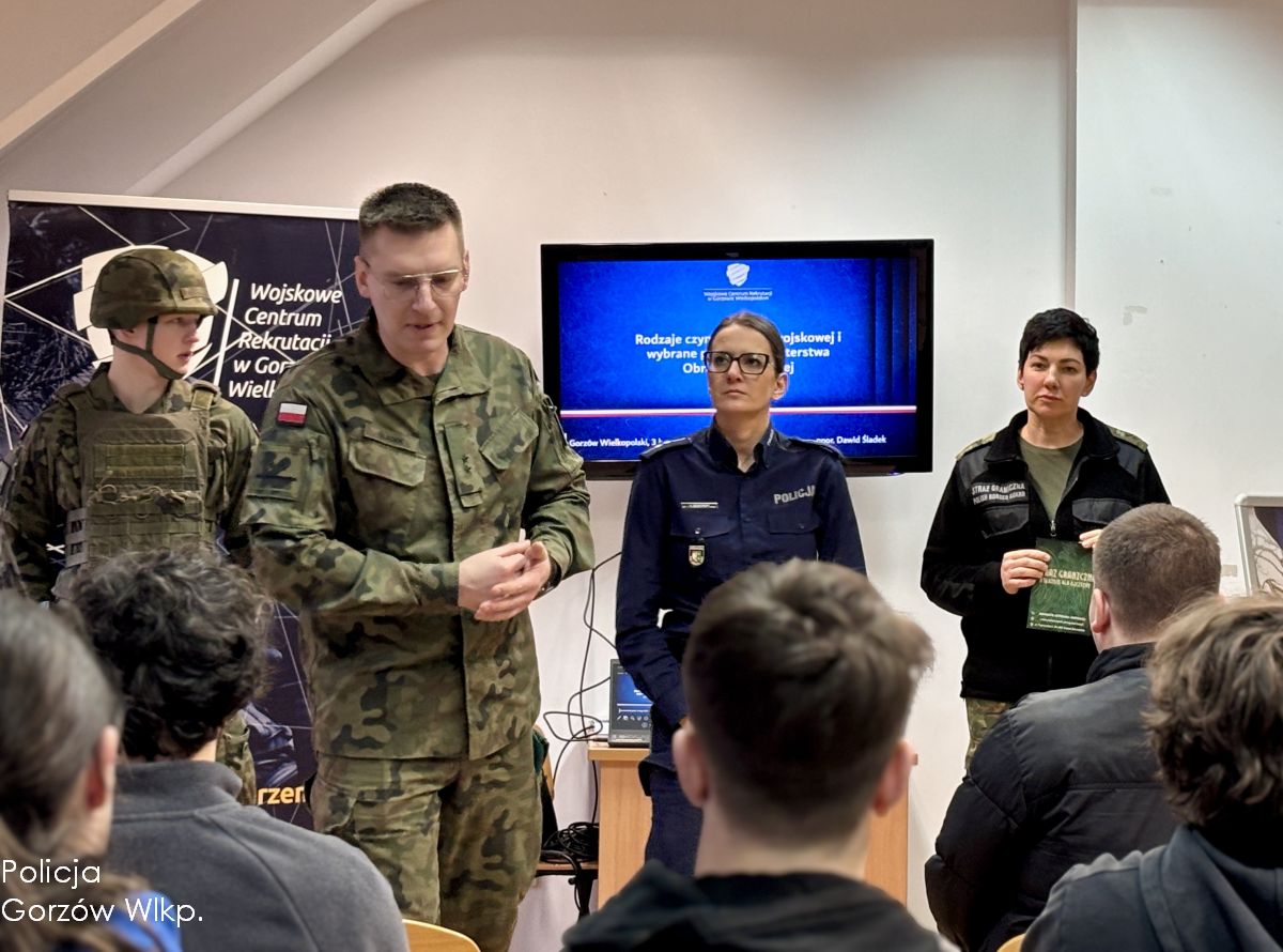 Niemal od początku lutego br. w Starostwie Powiatowym w Gorzowie Wlkp. odbywa się kwalifikacja wojskowa dla mieszkańców powiatu gorzowskiego. Do kwalifikacji wzywani są głównie mężczyźni kończący 19 rok życia. To doskonała okazja, aby porozmawiać z młodymi ludźmi o ich dalszych planach na przyszłość. Podczas działania komisji gorzowscy funkcjonariusze promują służbę w policji — udzielają informacji na temat procesu rekrutacji, wymagań stawianych kandydatom oraz specyfiki pracy w służbach mundurowych. Podkreślają znaczenie służby na rzecz społeczeństwa oraz możliwości rozwoju zawodowego w strukturach Policji.