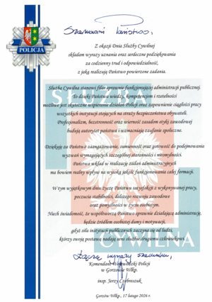 - Życzenia Komendanta Wojewódzkiego Policji w Gorzowie Wlkp. insp. Jerzego Czebreszuka z okazji Święta Służby Cywilnej Dodano: 17.02.2026